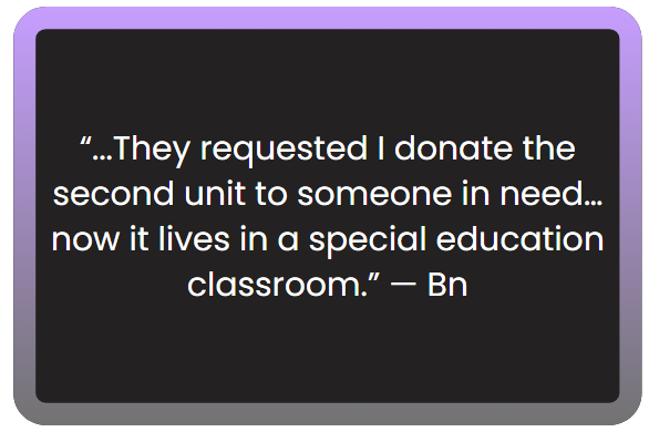We've been blown away by the stories of how much LoopTimer has helped teachers, ADHD students, and the neurodivergent community. Gifting a LoopTimer is directly buying a LoopTimer to be sent to these communities directly.